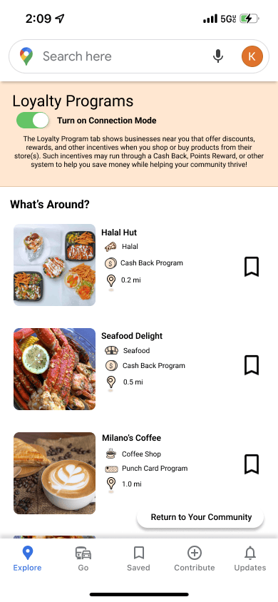 Our team explored how communities, especially small business owners and local residents, struggled with connection, visibility, and economic recovery. We focused on Google Maps as a platform to rebuild community engagement, helping users discover and support local, POC-owned businesses affected by the pandemic.