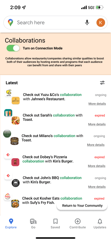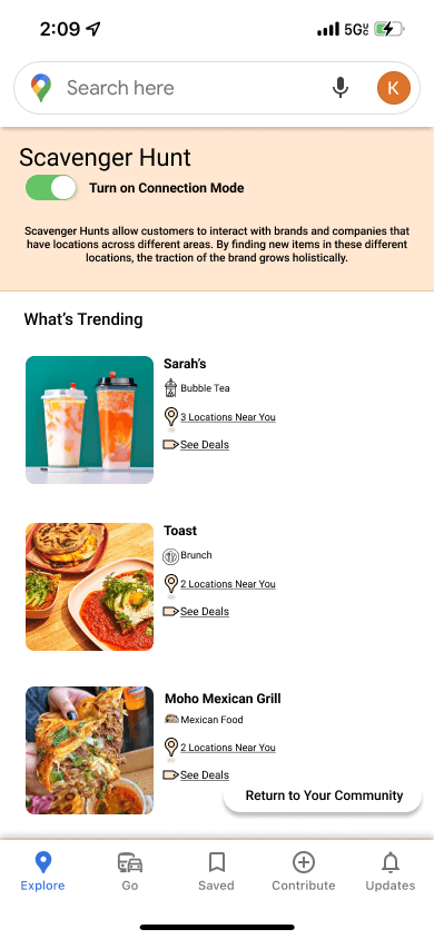 Our Google mentors affirmed that our problem space was relevant and well-developed, encouraging us to narrow the scope, sharpen who our primary user was, and make our concept feel โnativeโ to Google Maps. Their feedback pushed us to simplify the entry point, reduce UI complexity, and clearly articulate how โConnection Modeโ would add value without overwhelming merchants or users.