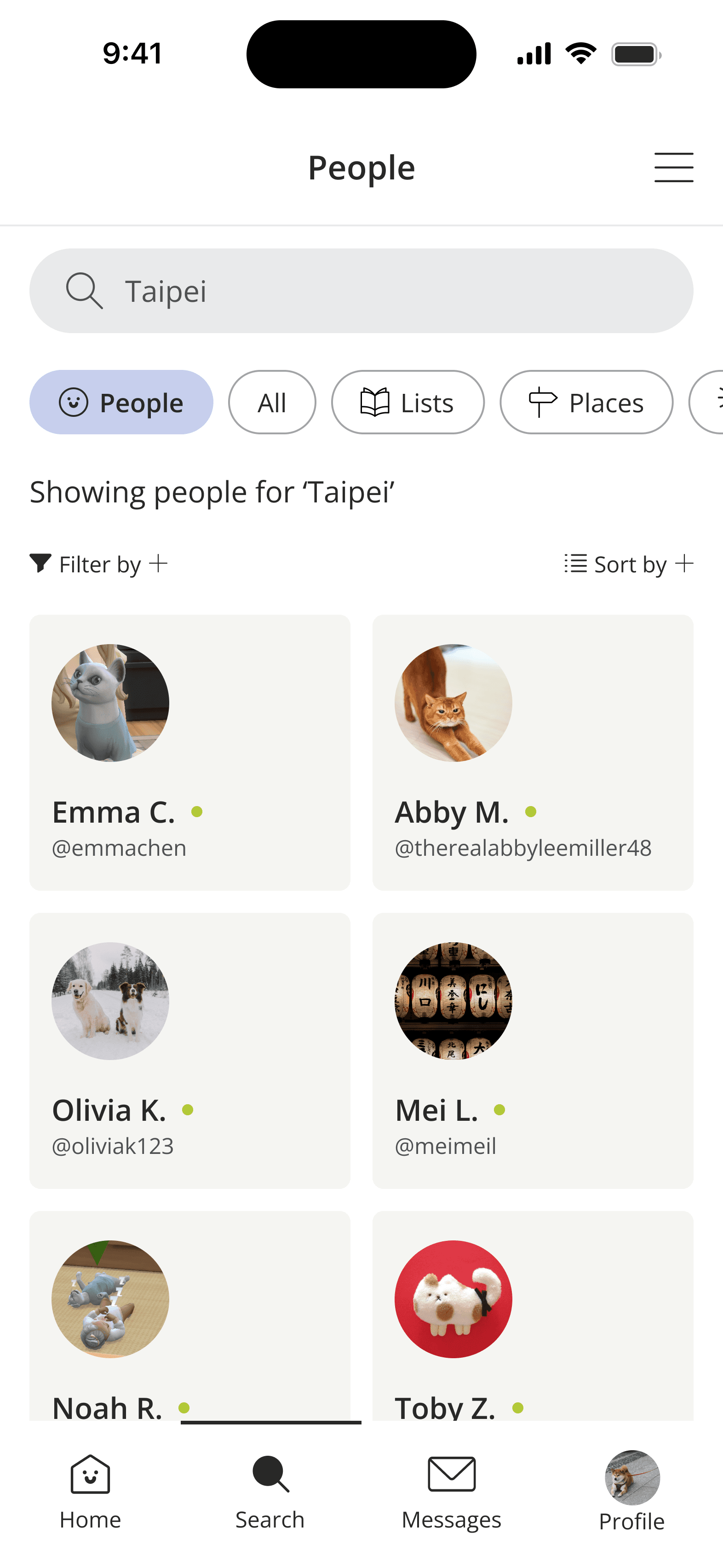 A green circle shows who is online and available to connect with.