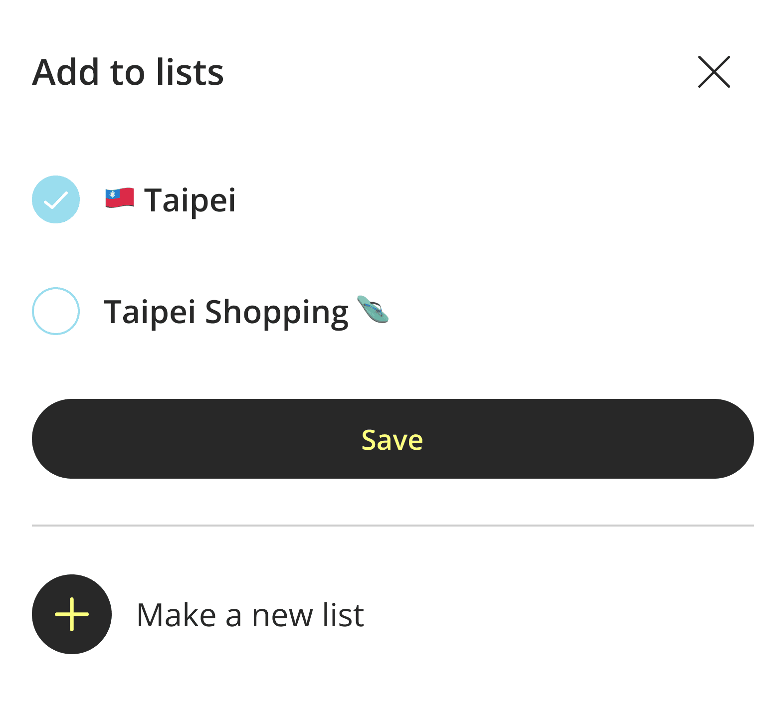 We added a dropdown that lets users choose and manage multiple lists so that saving to lists is clearer and more convenient for users.
