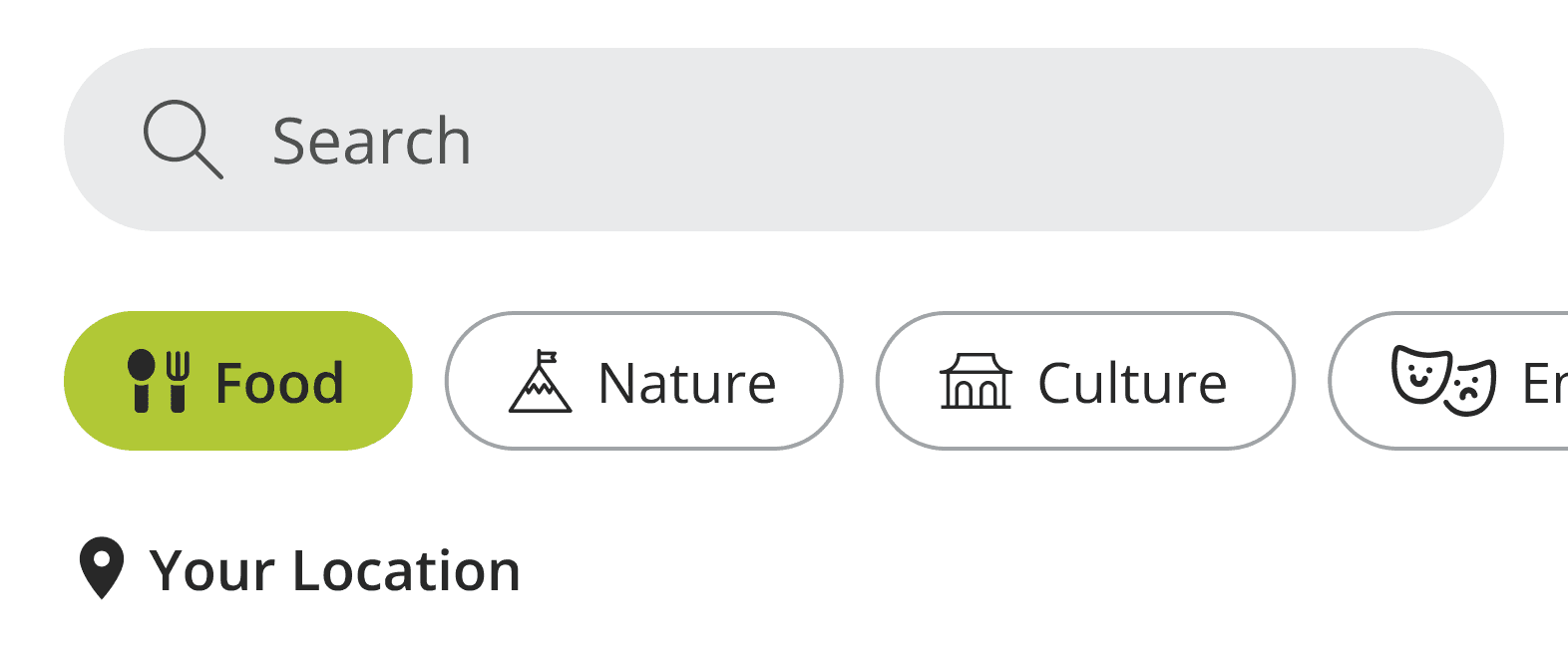 Inspired by Spotify and AirBnB, the navigation bar features fun icons, colored selected states, and clear labels for each category to differentiate filters and make them more scannable.